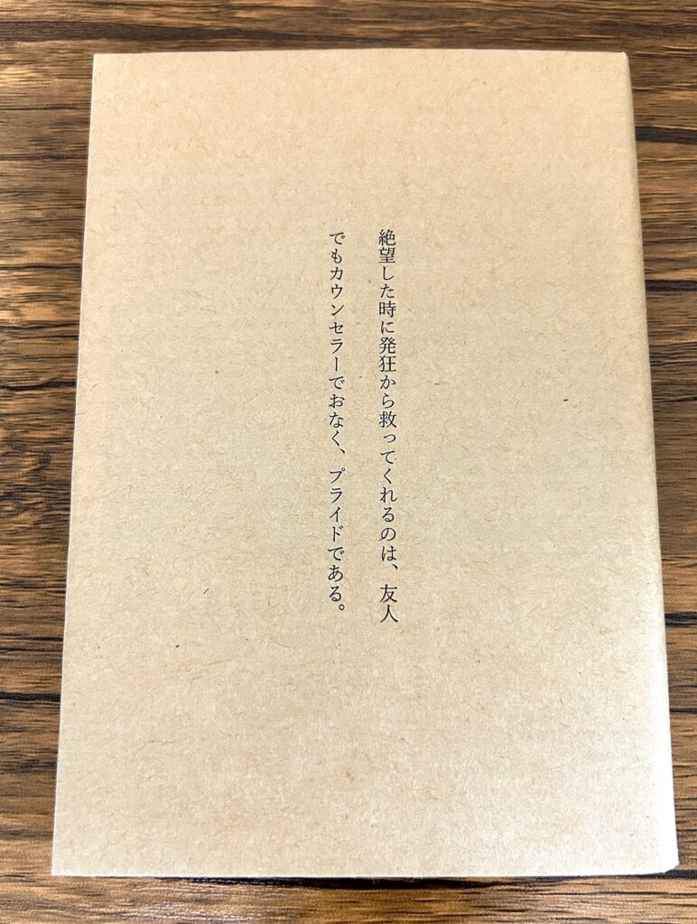 「絶望した時に発狂から救ってくれるのは、友人でもカウンセラーでもなく、プライドである。」